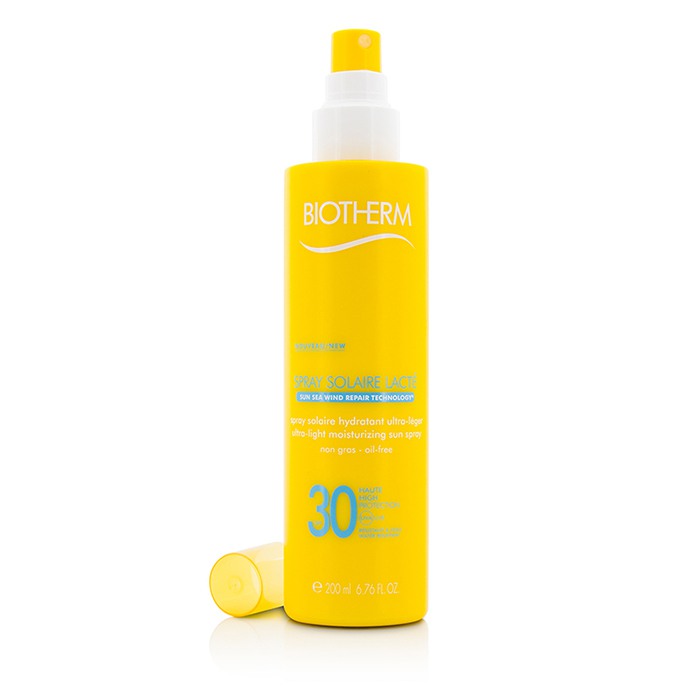 Xịt chống nắng Biotherm SPF 30, dạng sữa siêu nhẹ, 200ml, bảo vệ da và dưỡng ẩm hiệu quả, thích hợp cho mọi loại da.