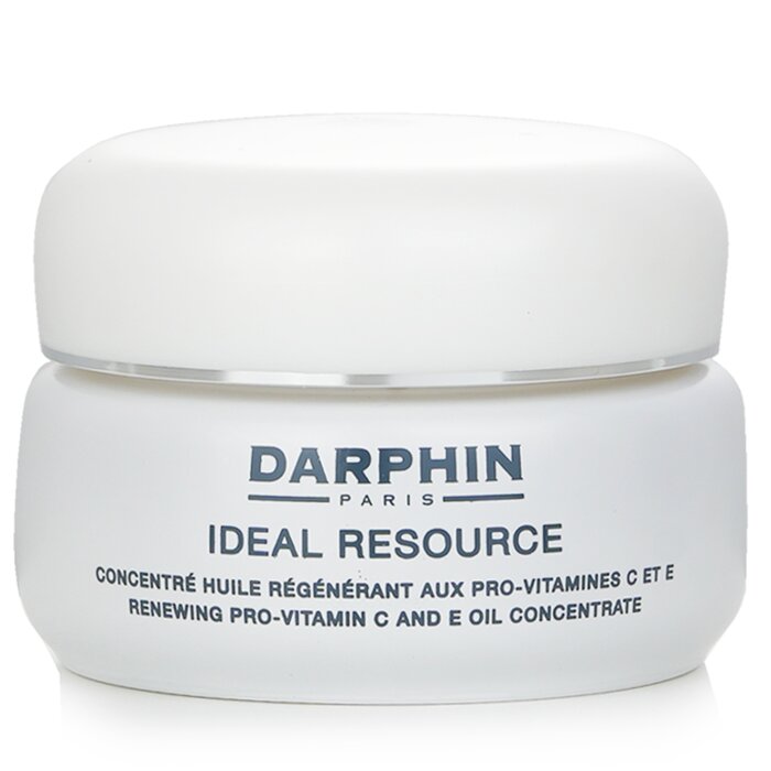 Darphin Ideal Resource Renewing Pro Vitamin C E Oil Concentrate chứa Vitamin C và E, giúp làm sáng da, giảm thiểu dấu hiệu lão hóa và hỗ trợ tái tạo tế bào da. Chất dầu nhẹ nhàng thẩm thấu vào da, cung cấp độ ẩm và nuôi dưỡng làn da từ sâu bên trong. Sản phẩm còn giúp làm đều màu da, giảm thiểu sự xuất hiện của các đốm nâu và mang lại vẻ rạng rỡ cho làn da.