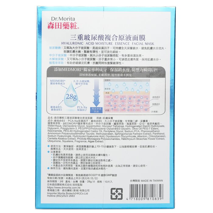 Giới thiệu sản phẩm Dr Morita Hyaluronic Acid Moisture Essence Facial Mask 10Pcs