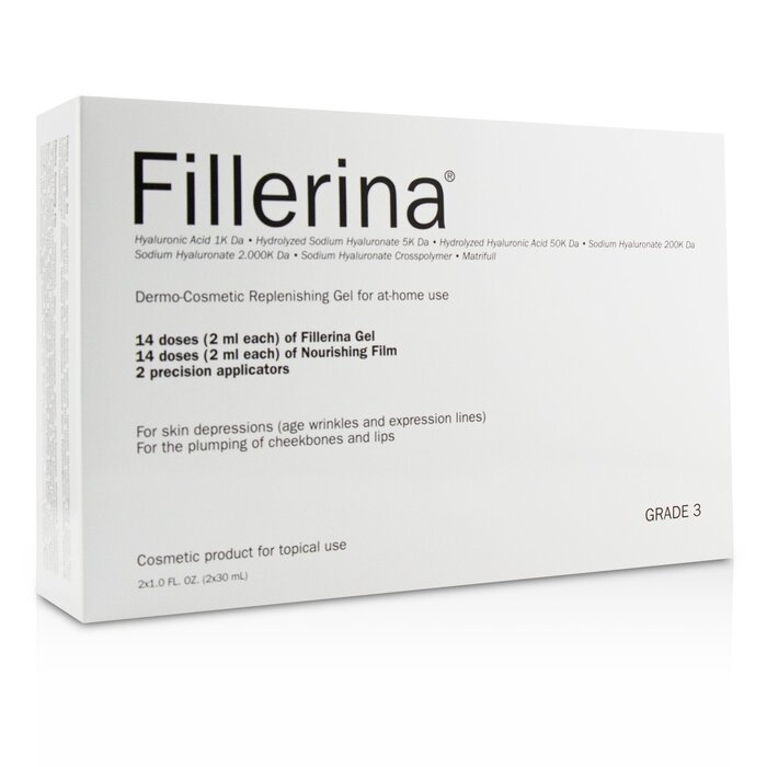 Với dung tích 2x30ml, Fillerina Grade 3 phù hợp cho những ai muốn cải thiện tình trạng da mà không cần phải đến spa hay thẩm mỹ viện. Sản phẩm này giúp làm đầy các vùng da bị chảy xệ, đồng thời cải thiện độ đàn hồi và độ săn chắc của da.