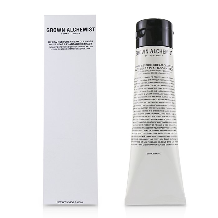 Sữa rửa mặt Grown Alchemist Hydra Restore với chiết xuất lá olive và Plantago, giúp làm sạch, cấp ẩm cho da mịn màng.