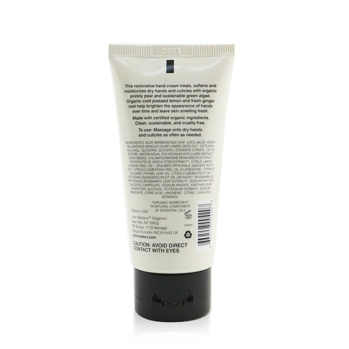 Kem tay John Masters Organics hương chanh gừng 60ml, nuôi dưỡng da mềm mại, thơm mát, phù hợp cho mọi loại da.