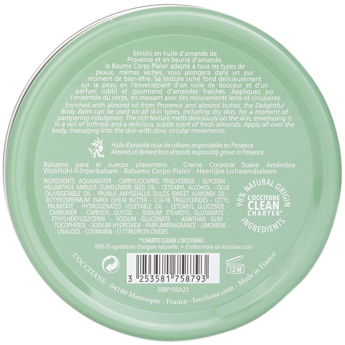 Dưỡng ẩm sâu cho da với L'Occitane Almond Delightful Body Balm 100ml, mang lại làn da mềm mại, mịn màng và hương thơm quyến rũ.