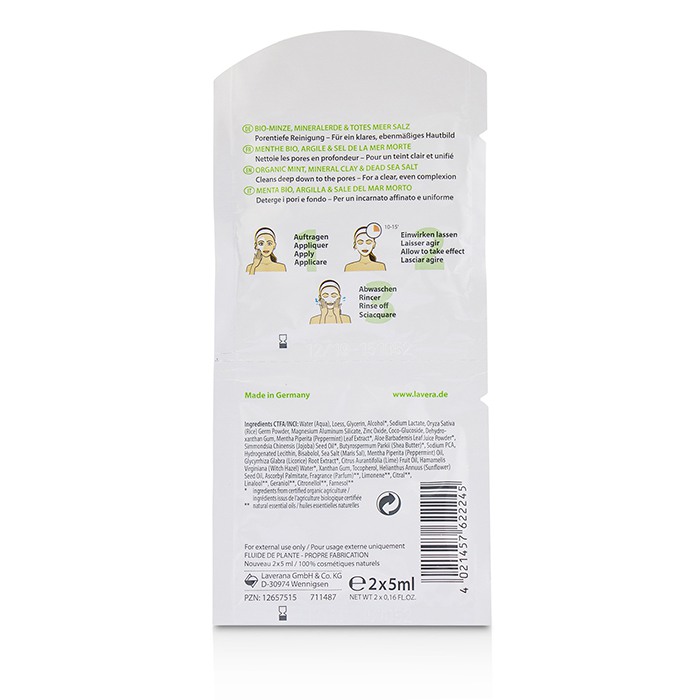Giới thiệu Mặt nạ thanh lọc bạc hà Lavera hữu cơ 2x5ml
