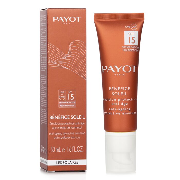 Sản phẩm Payot Benefice Soleil Anti Aging Protective Emulsion SPF 15 UVA UVB 50ml không chỉ là một sản phẩm chống nắng mà còn là một sự đầu tư cho sức khỏe và vẻ đẹp của làn da bạn. Hãy chăm sóc làn da của bạn ngay hôm nay với Payot!