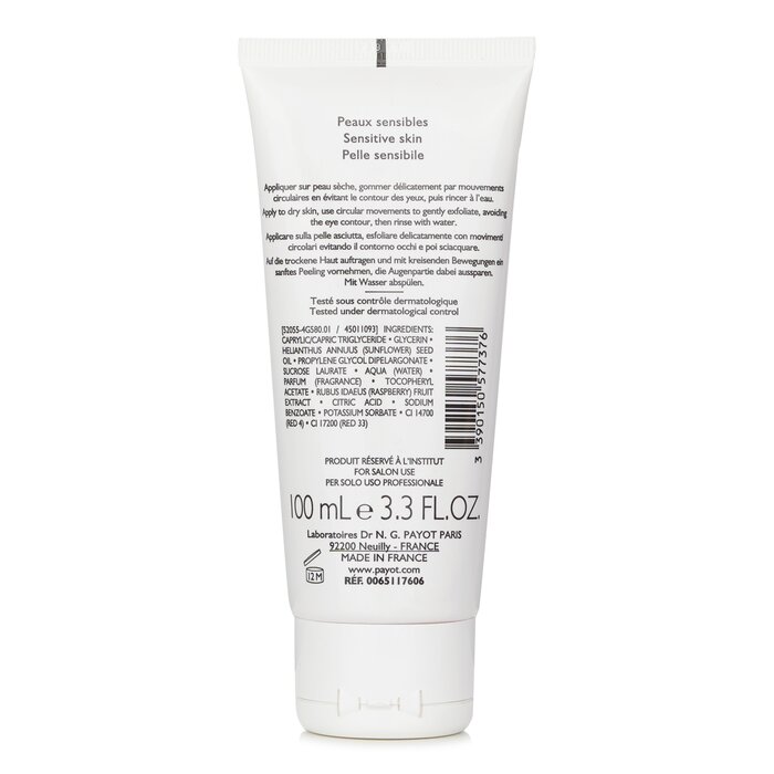 Gel tẩy tế bào chết Payot với AHA và tinh chất mâm xôi, salon size 100ml, giúp làn da mềm mịn, sáng khỏe.
