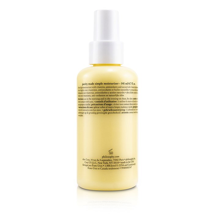 Philosophy Purity Made Simple Ultra Light Moisturizer 141ml là sự lựa chọn hoàn hảo cho những ai tìm kiếm một sản phẩm dưỡng ẩm nhẹ nhàng, an toàn và hiệu quả. Hãy trải nghiệm ngay hôm nay để cảm nhận sự khác biệt cho làn da của bạn.