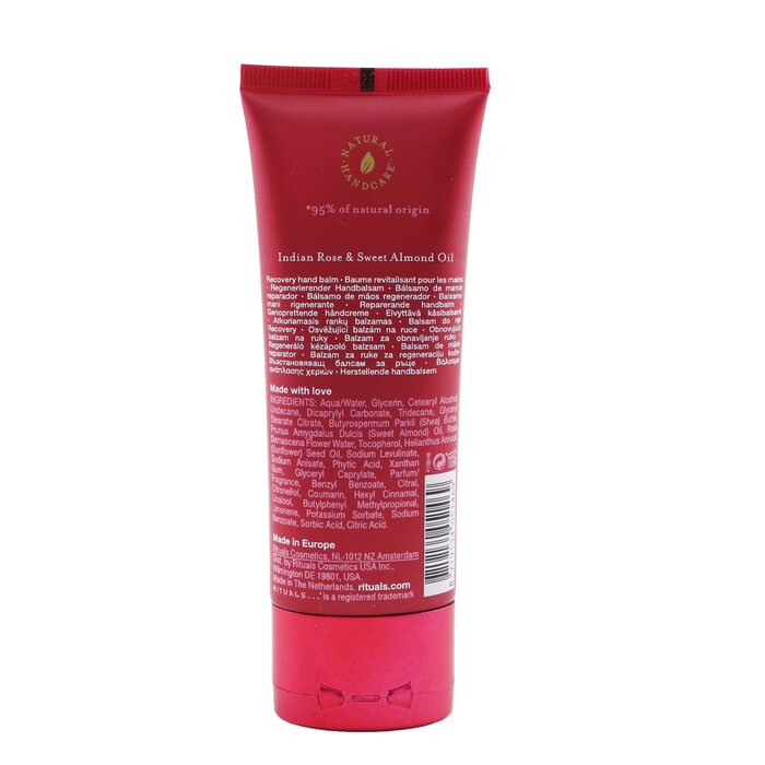 Rituals The Ritual Of Ayurveda Recovery Hand Balm được chiết xuất từ các thành phần tự nhiên như dầu hạnh nhân và chiết xuất hoa sen. Những thành phần này giúp cung cấp độ ẩm sâu, làm mềm da và bảo vệ làn da tay khỏi các tác nhân gây hại từ môi trường.